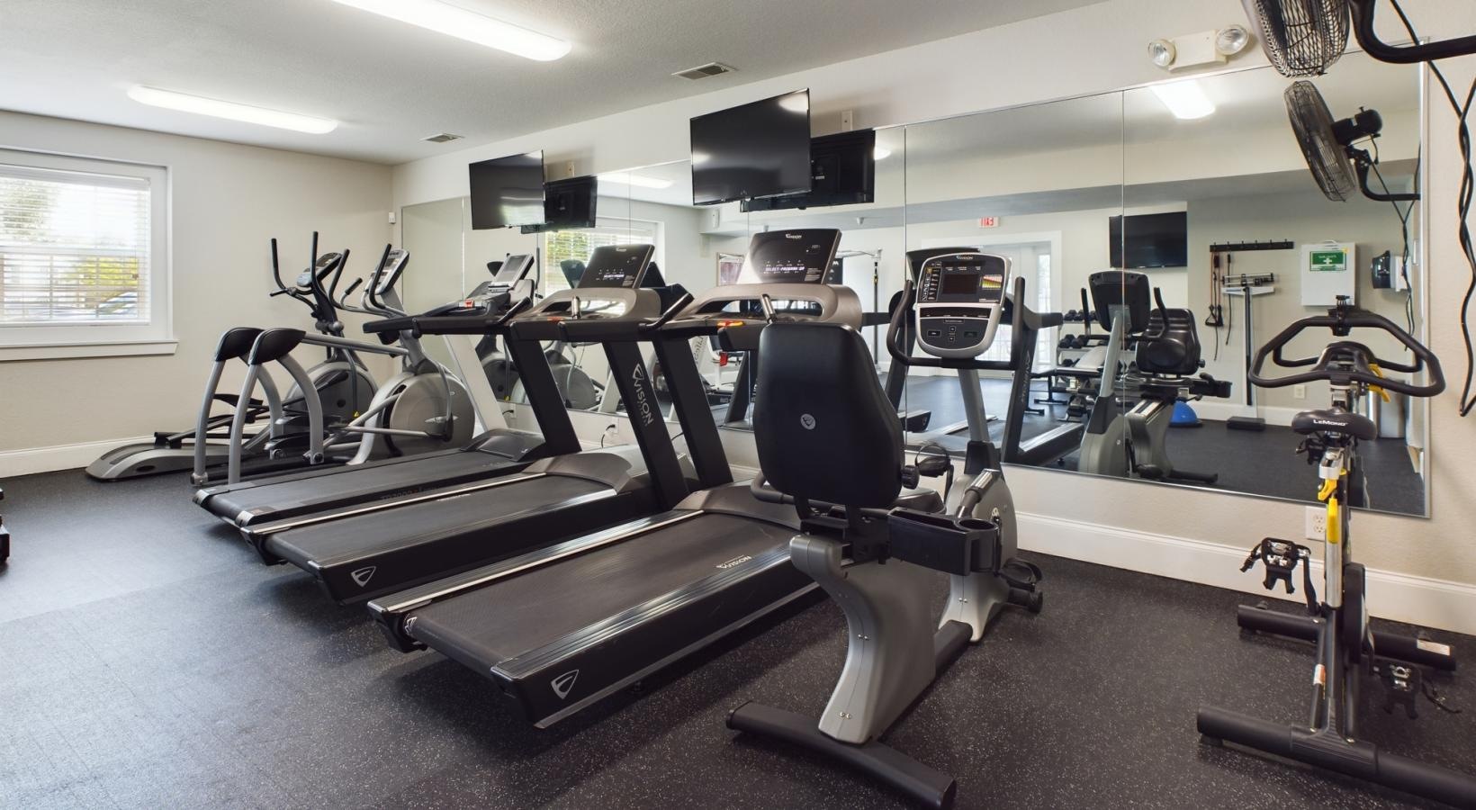 • a gym with exercise equipment